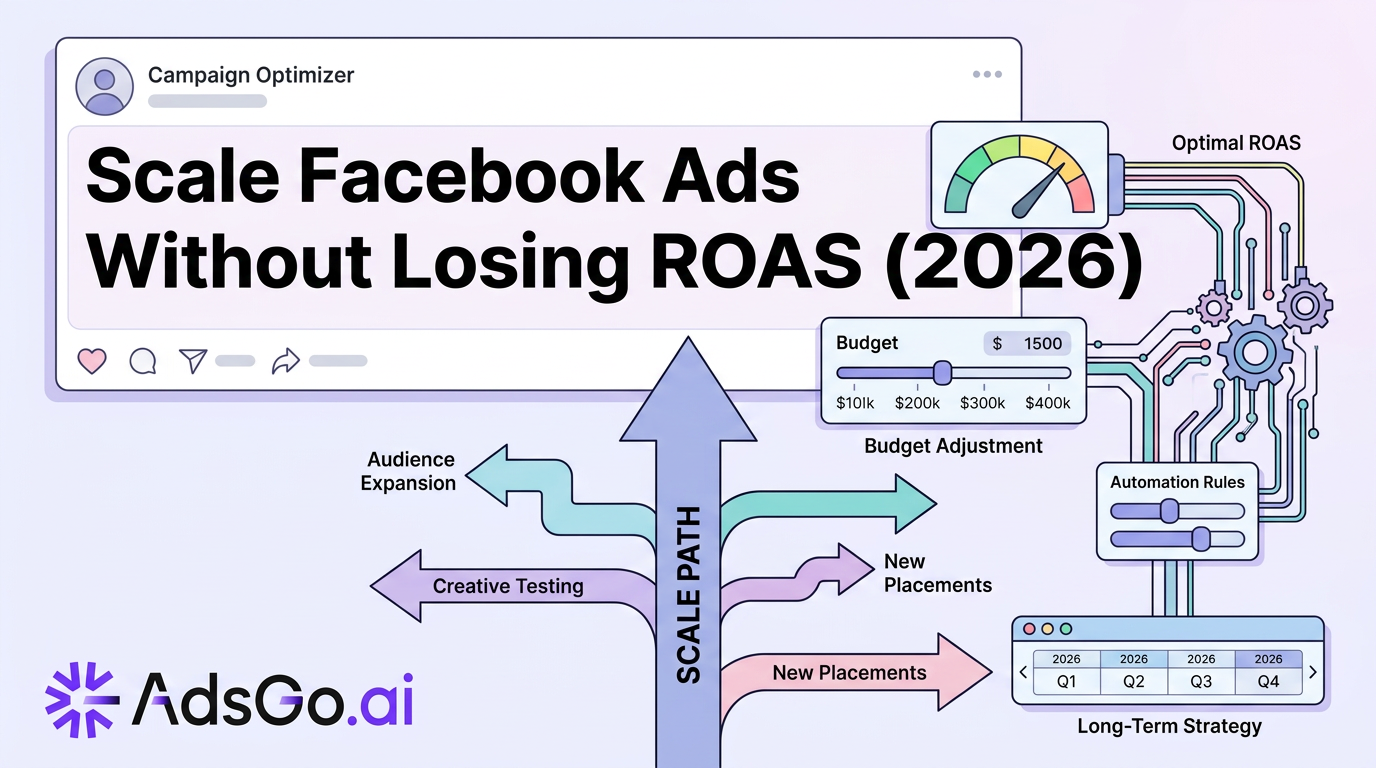 Scaling spend is easy. Keeping ROAS stable is the hard part. How to scale Facebook Ads without watching ROAS collapse comes down to four decisions: whether you grow vertically or horizontally, which time windows you trust, which readiness signals justify more budget, and whether your problem lives inside Meta — or in how Meta connects to the rest of the business. This guide is an operator framework so you expand delivery only when marginal CPA still makes money.